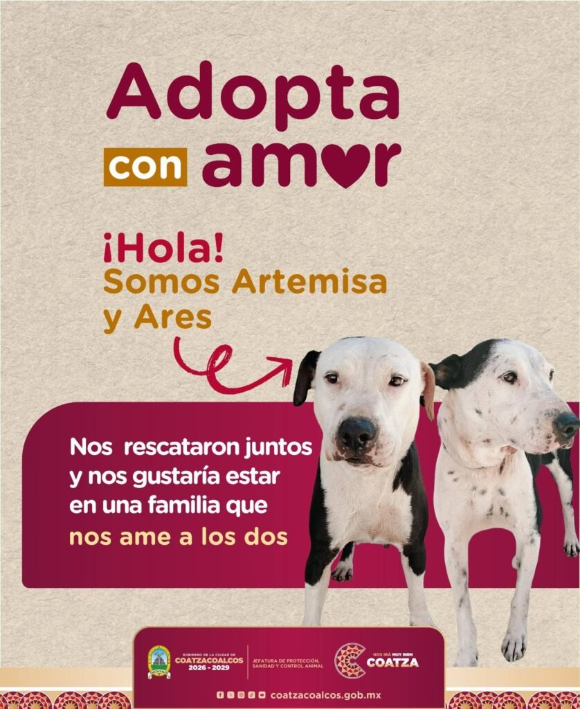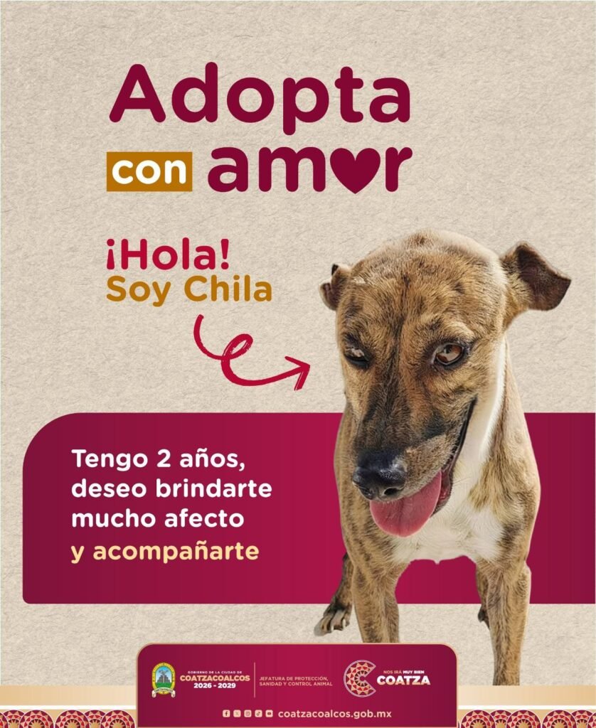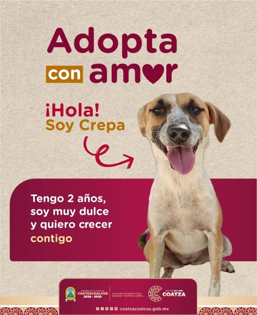 Coatzacoalcos, Ver., 28 de abril de 2026.- El Ayuntamiento de Coatzacoalcos, a través del área de Protección, Sanidad y Control Animal, lanzó un llamado a la ciudadanía para fomentar la adopción responsable de perros rescatados que actualmente buscan un nuevo hogar.