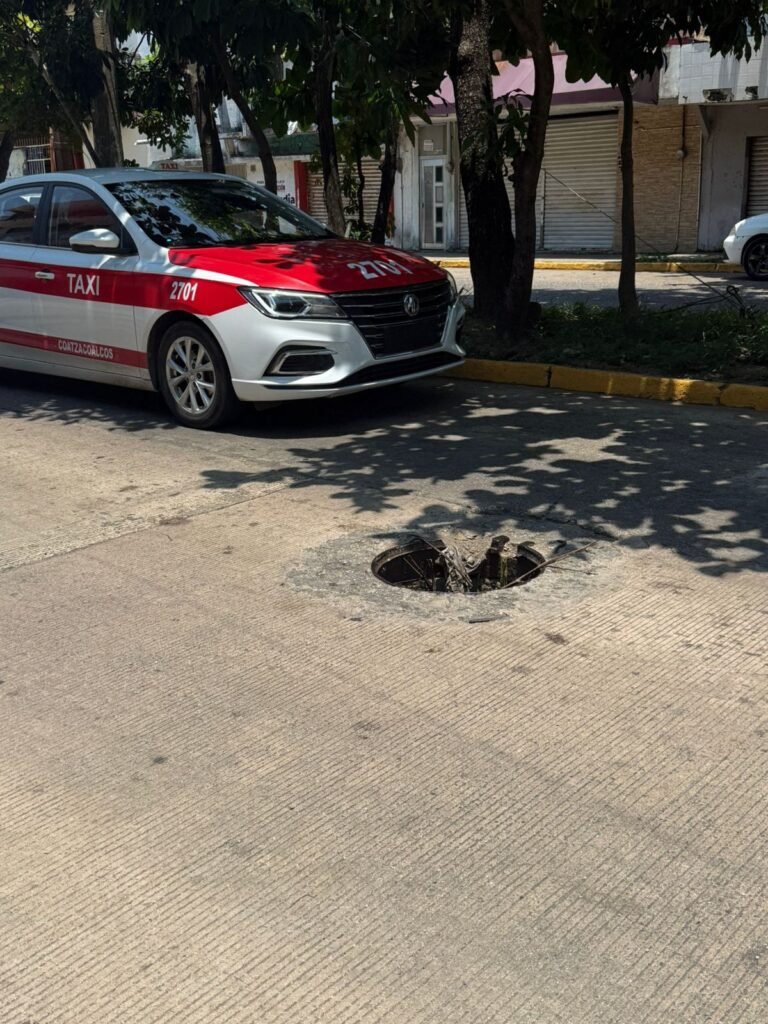 Vecinos y automovilistas han denunciado que el registro abierto, ubicado en pleno centro de Coatzacoalcos, ha provocado múltiples incidentes.