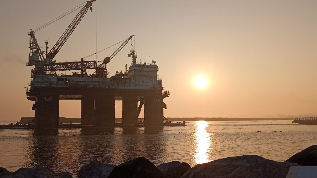 Coatzacoalcos, Ver.; 19 de febrero de 2026.– En medio del amanecer de este jueves, la imponente plataforma semisumergible IOLAIR arribó al puerto de Coatzacoalcos, captando la atención de deportistas y ciudadanos que transitaban por el malecón y el paseo de las escolleras.