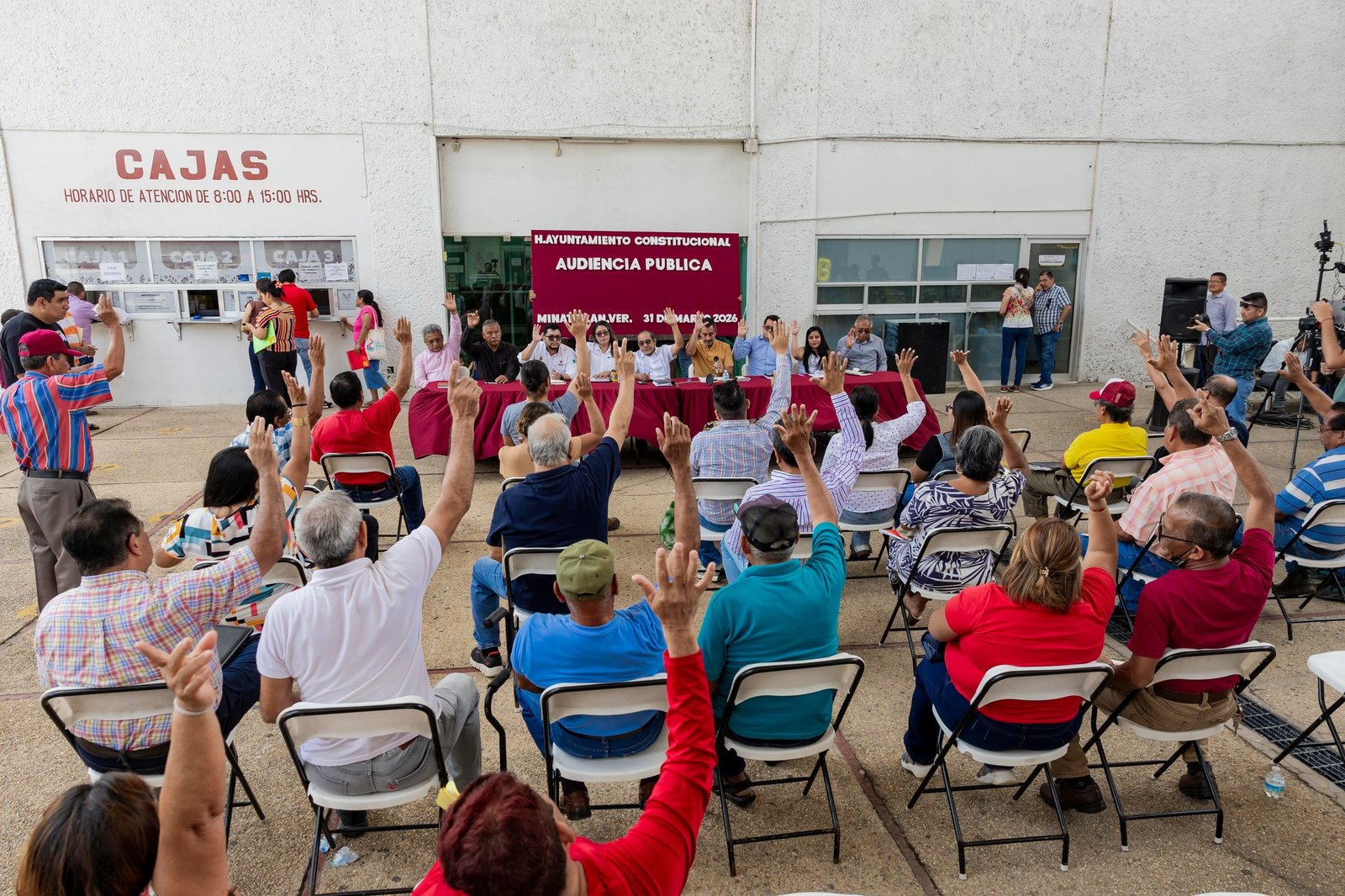 Minatitlán, Ver., 31 de marzo de 2026.– El presidente municipal de Minatitlán, Guillermo Reyes Espronceda, encabezó la Primera Audiencia Pública realizada en la explanada del Palacio Municipal, con el objetivo de fortalecer el diálogo directo entre autoridades y ciudadanía.