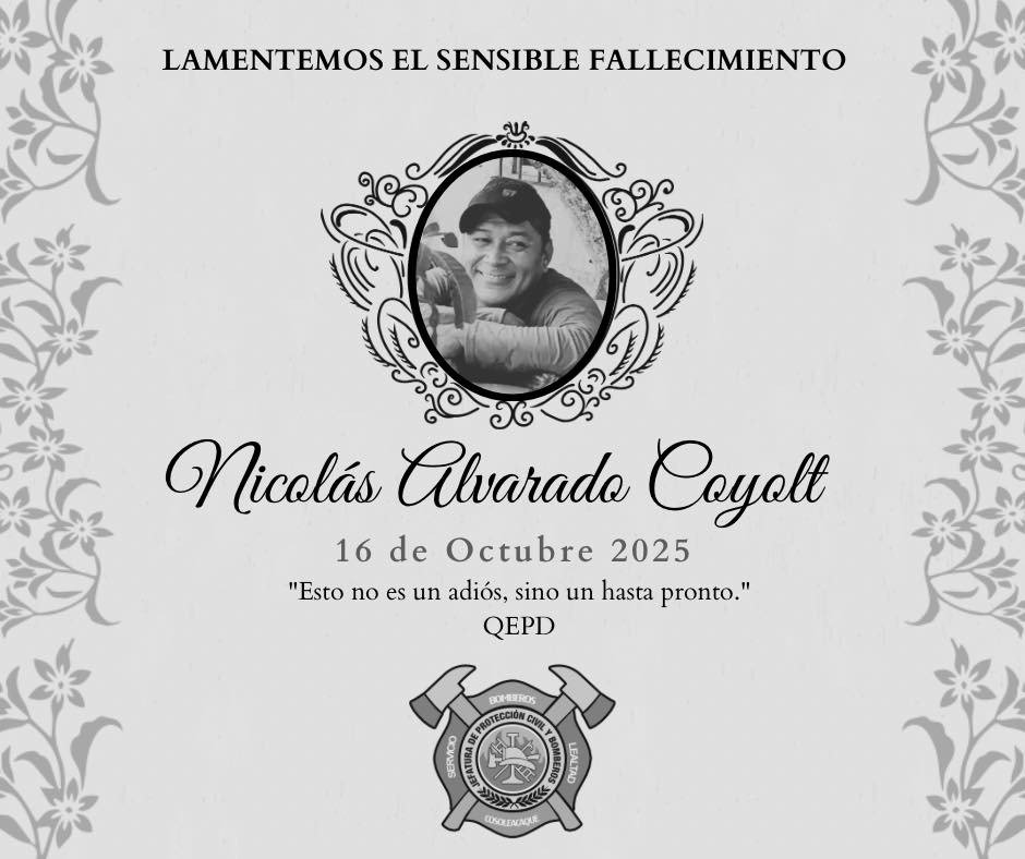 “Lamentamos profundamente el fallecimiento de nuestro compañero Nicolás Alvarado Coyolt. Su partida deja un gran vacío en esta institución. Elevamos nuestras oraciones por su eterno descanso”, manifestó la dependencia.
