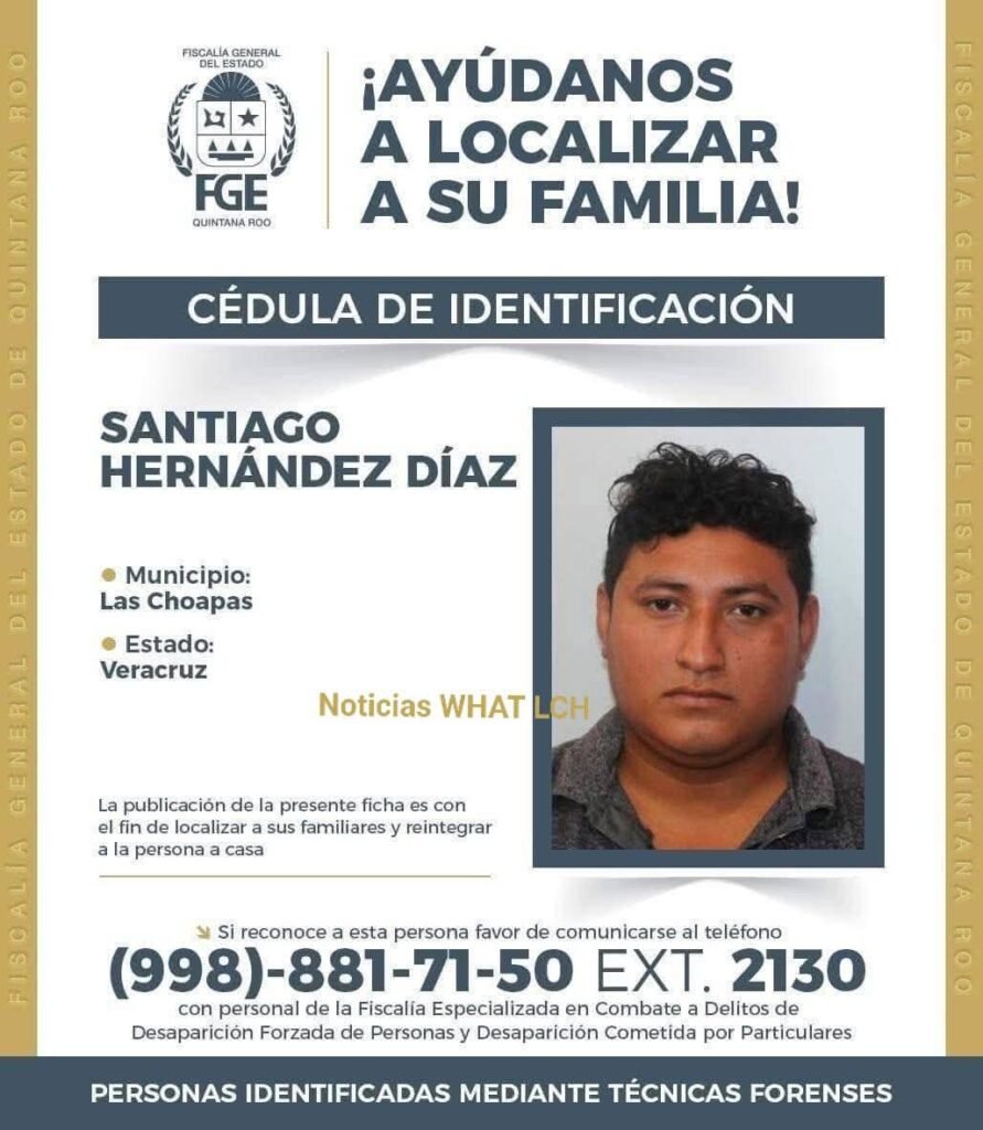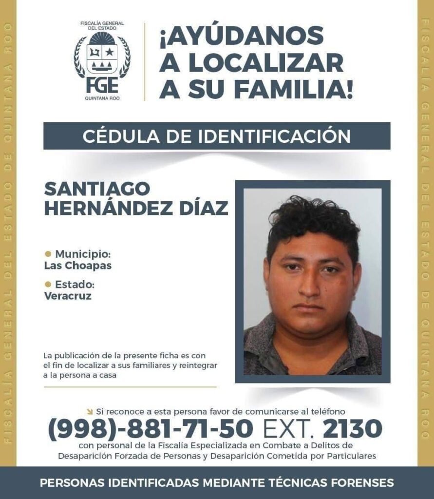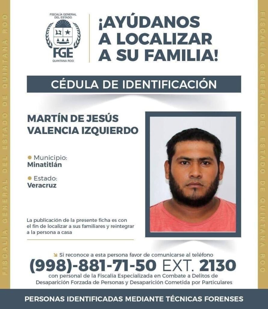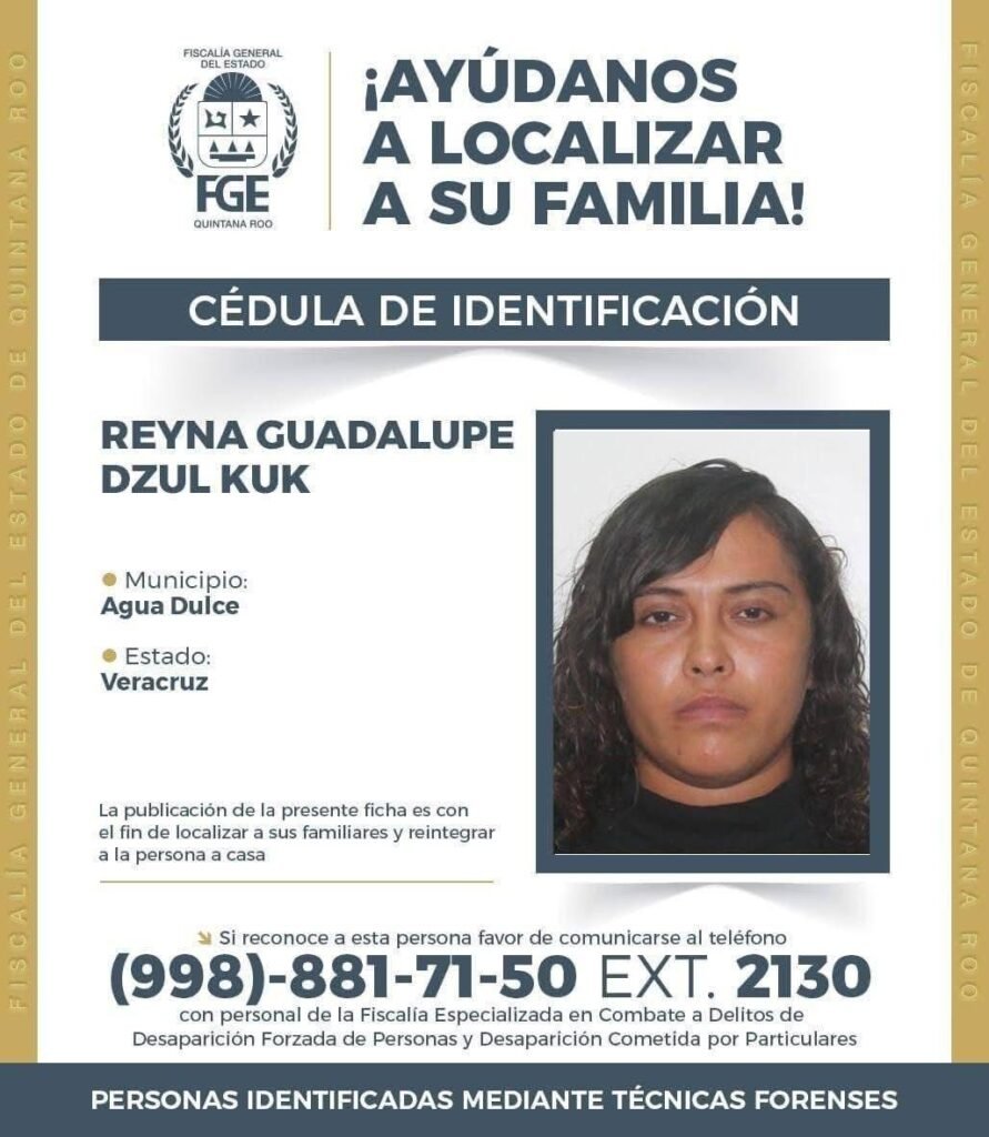 Quienes tengan información o relación con alguna de las personas mencionadas, pueden comunicarse al teléfono (998) 881-71-50 ext. 2130, donde serán atendidos por personal de la Fiscalía Especializada en Combate a Delitos de Desaparición Forzada de Personas y Desaparición Cometida por Particulares.