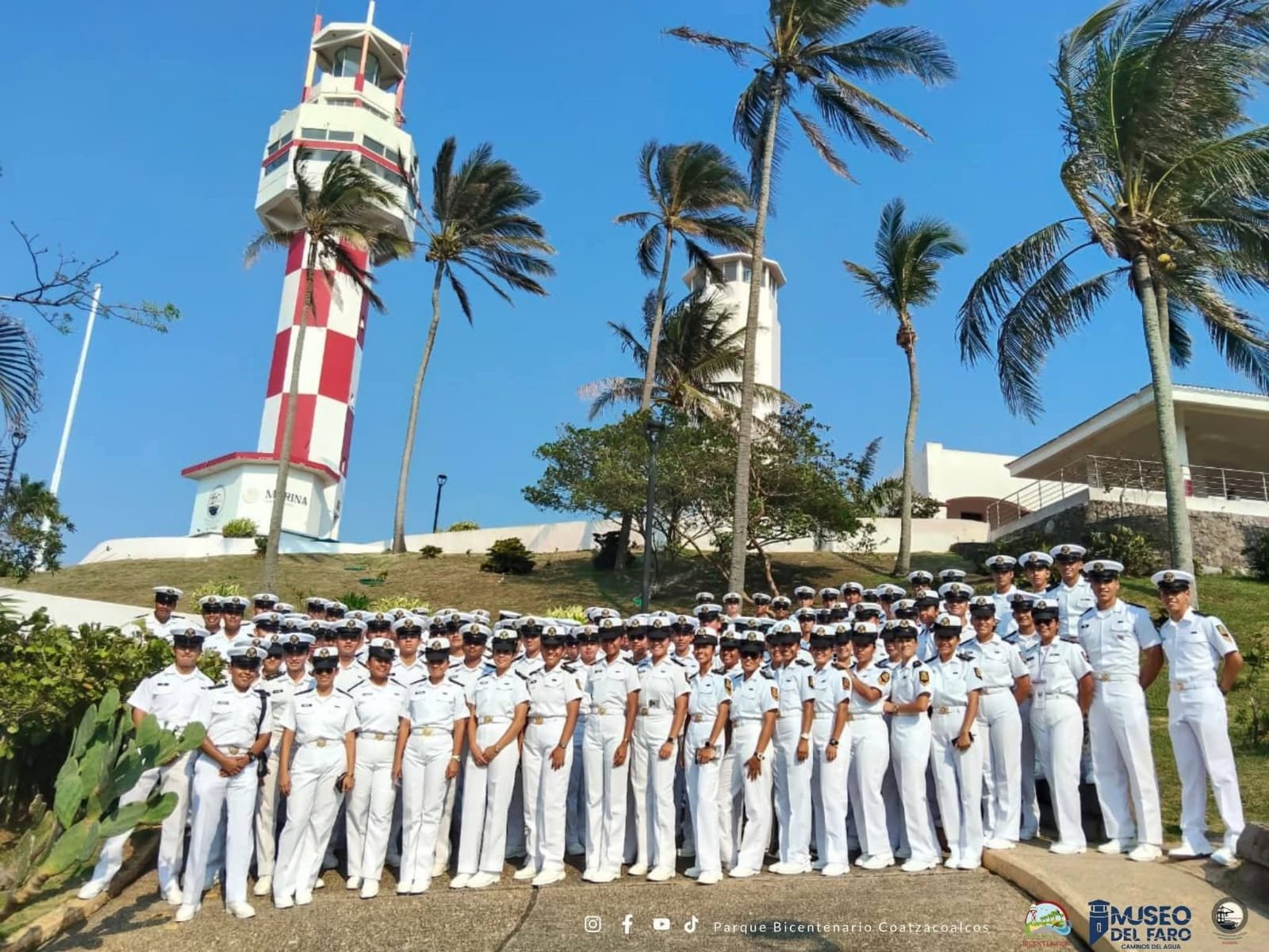 Cadetes navales visitan el Parque Bicentenario tras su arribo a Coatzacoalcos