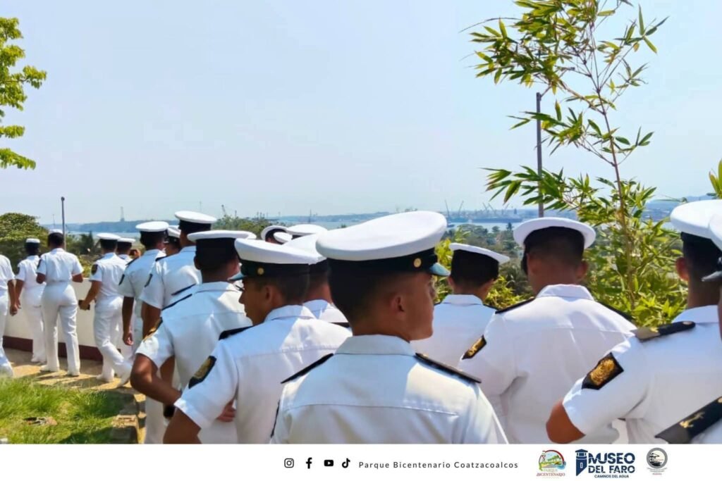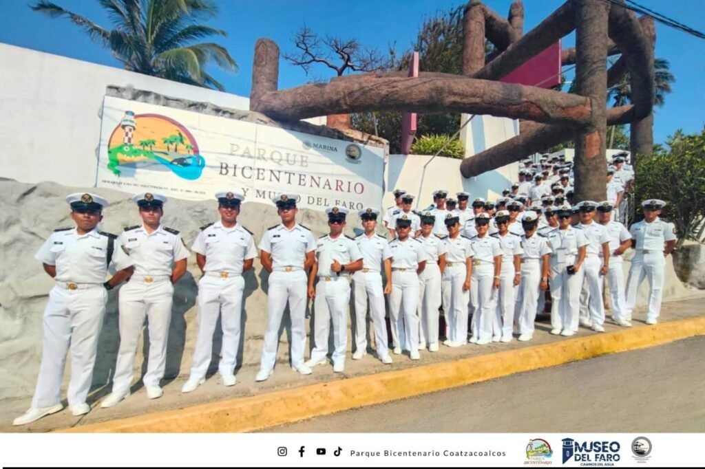 Coatzacoalcos, Ver., 16 de abril de 2026.– Como parte de su programa de formación y actividades en el sur de Veracruz, cadetes de tercer año de la Heroica Escuela Naval Militar realizaron un recorrido por el Parque Bicentenario de Villa Allende, tras su llegada a bordo del buque ARM Isla Holbox (BAL-02).