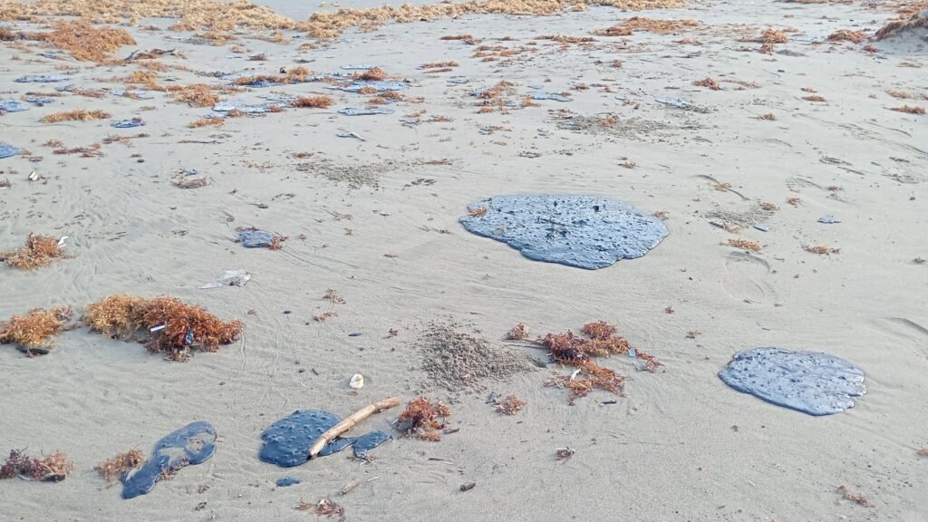 Coatzacoalcos, Ver., 8 de abril de 2026.– Restos de hidrocarburo volvieron a recalar en playas de Coatzacoalcos, donde esta mañana se reportó la presencia de plastas de chapopote a lo largo del litoral.