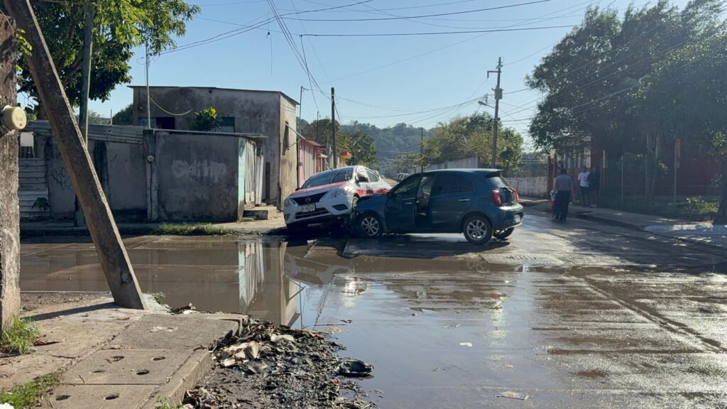 El percance ocurrió en el cruce de las calles Crisantemos y Violetas, punto donde vecinos señalan que de manera recurrente se presentan hechos de tránsito debido a la falta de precaución de algunos conductores en Coatzacoalcos.