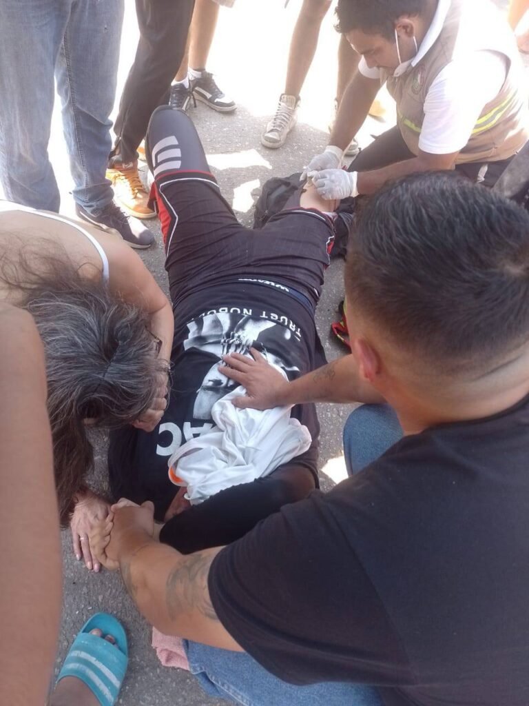 A causa de los fuertes golpes que sufrió por el choque, este joven sufrió lesiones en sus piernas y mano durante la caída.