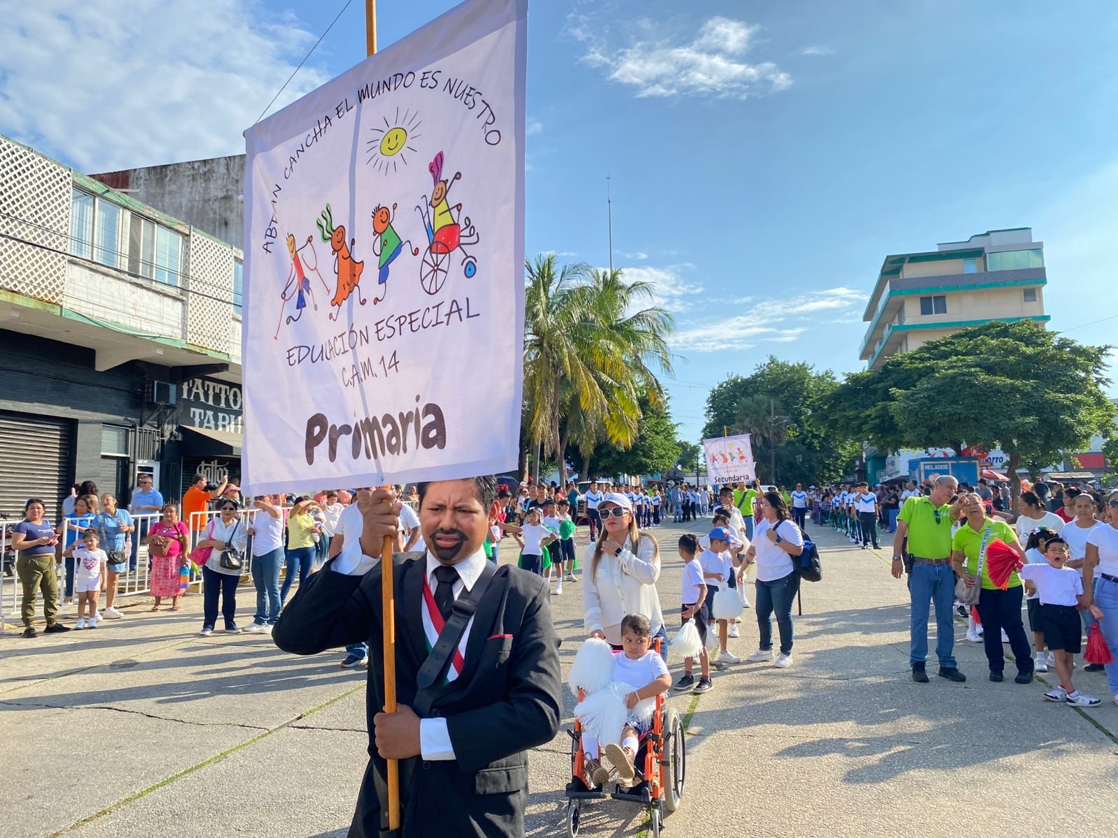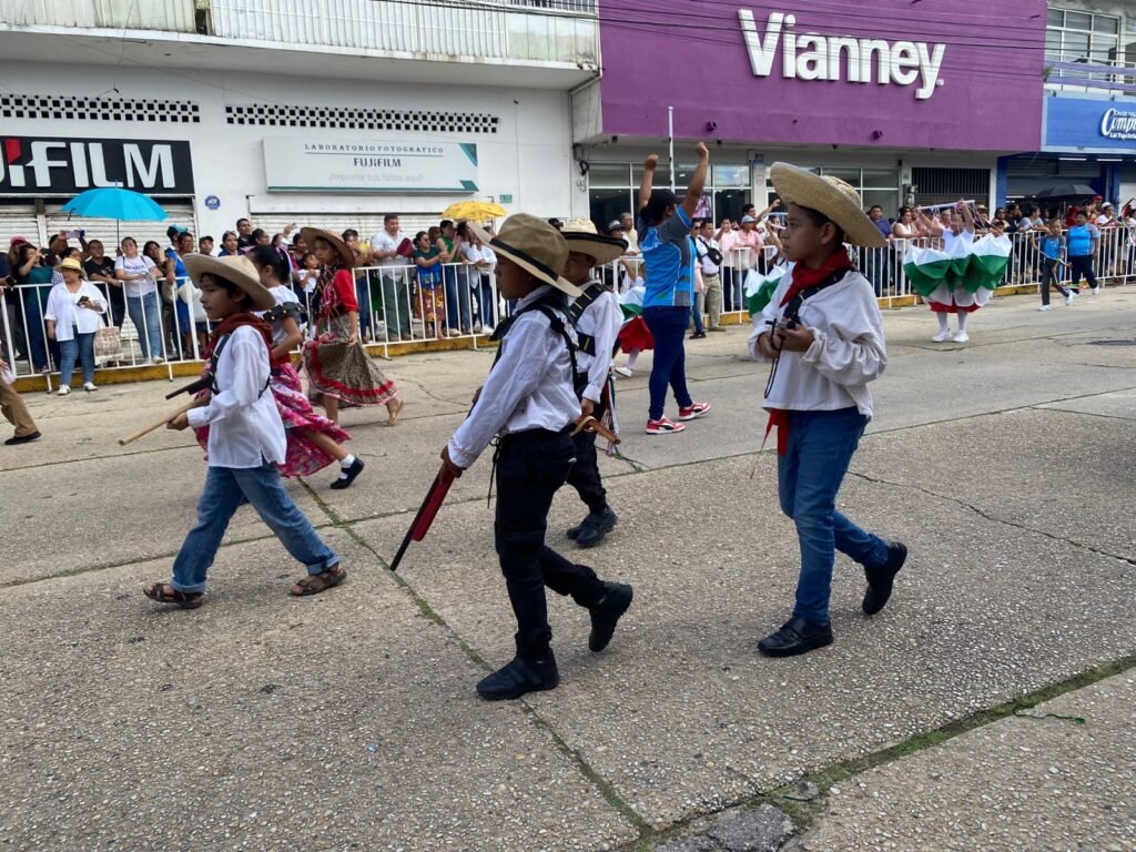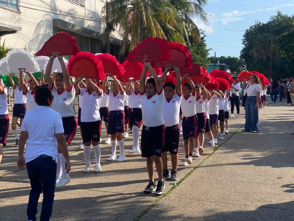 Coatzacoalcos amaneció este jueves con el eco vibrante de tambores, voces juveniles y el ondear constante de miles de banderas tricolores.