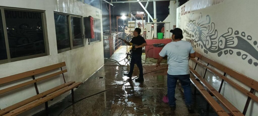 Coatzacoalcos, Ver., 25 de marzo de 2026.– El Ayuntamiento de Coatzacoalcos llevó a cabo una jornada de limpieza profunda en el servicio de transbordadores, con el objetivo de garantizar espacios más seguros, higiénicos y dignos para los usuarios.