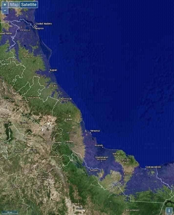 Investigaciones de la Administración Nacional de Aeronáutica y el Espacio (NASA), a través de modelos climáticos y mapas interactivos sobre elevación y nivel del mar, advierten que el derretimiento acelerado de los polos y glaciares provocará un incremento progresivo del nivel oceánico, lo que pone en riesgo a diversas zonas costeras del mundo, incluyendo el Golfo de México.