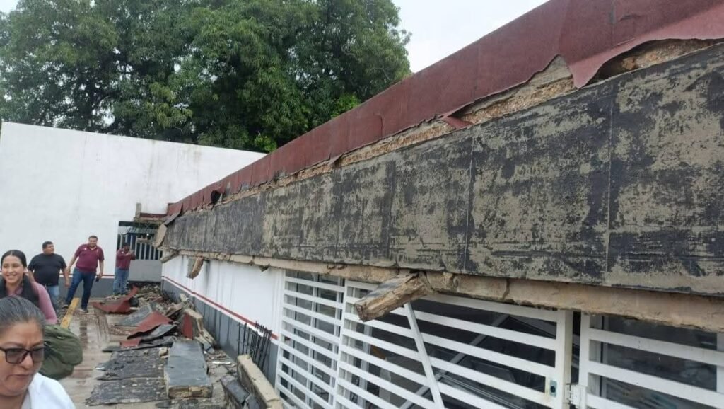 Una intensa lluvia registrada entre la noche del lunes y la mañana de este martes provocó el colapso de un tramo del techo del nuevo Centro de Salud de Las Choapas, una obra que continúa sin operar pese a haber sido anunciada como concluida hace más de un año.