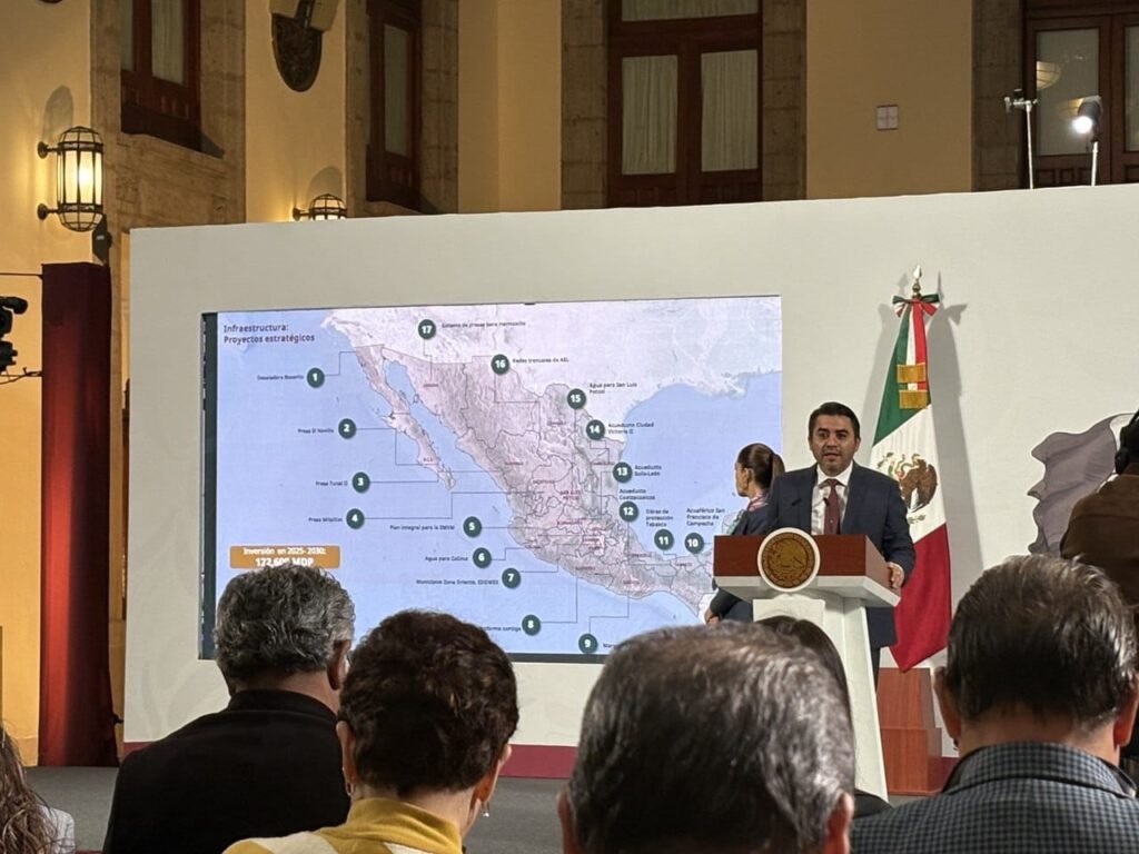 El director general de la dependencia, Efraín Morales, acompañado del subdirector de Agua Potable, Felipe Zataráin, informó durante la Conferencia del Pueblo que este proyecto forma parte de un paquete de 17 acciones prioritarias a nivel nacional orientadas a garantizar el suministro en regiones con mayores necesidades.