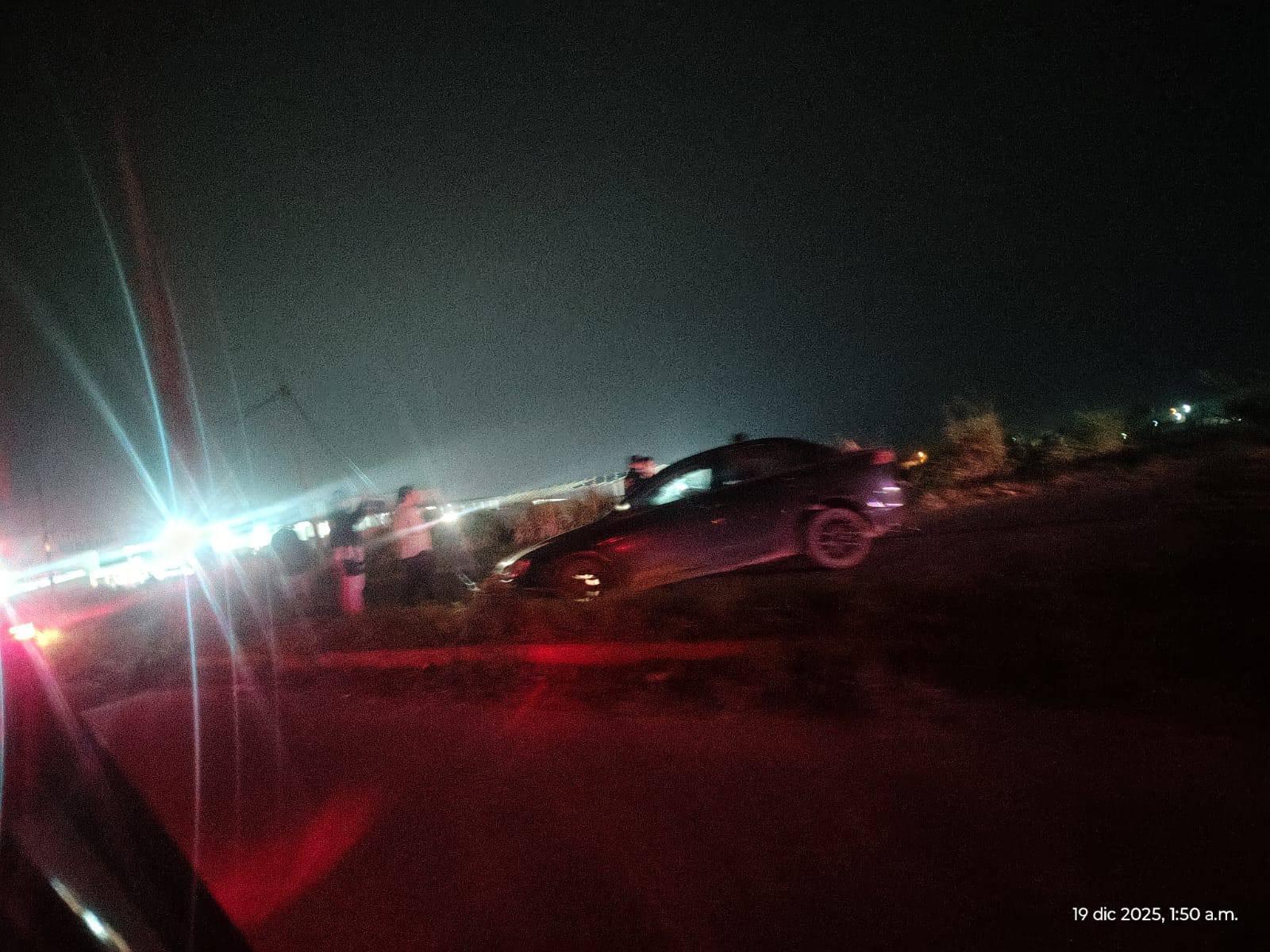 Un automovilista milagrosamente resultó ileso está madrugada, luego de derribar dos postes cuando circulaba por la carretera hacia la congregación de Las Barrillas, en el poniente de Coatzacoalcos.