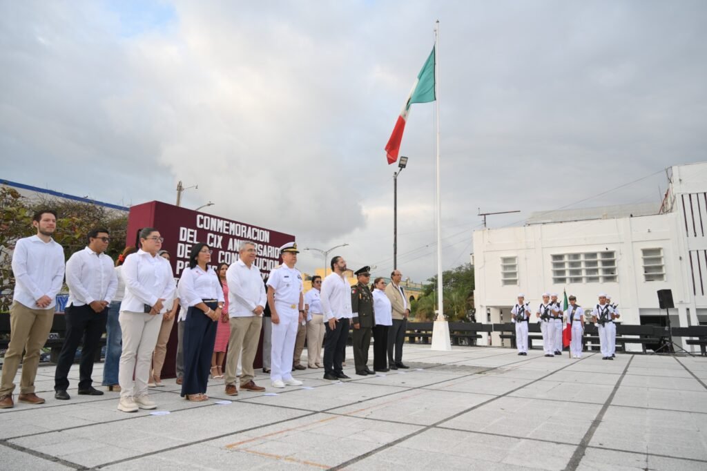 Acompañado por integrantes del Cabildo, autoridades navales y militares, así como representantes del Poder Legislativo, el alcalde destacó la vigencia de la Constitución de 1917 como el eje rector de las políticas públicas, orientadas al bienestar social, la justicia y el desarrollo del país.