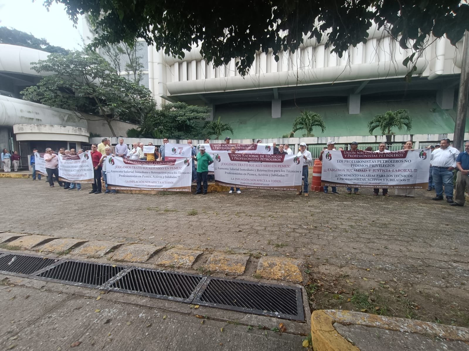 Integrantes de la Unión Nacional de Técnicos y Profesionistas Petroleros (UNTyPP) realizaron este martes una nueva protesta a las afueras del edificio administrativo de Petróleos Mexicanos (Pemex) en Coatzacoalcos, para exigir mejores condiciones salariales y un trato igualitario dentro de la empresa productiva del Estado.