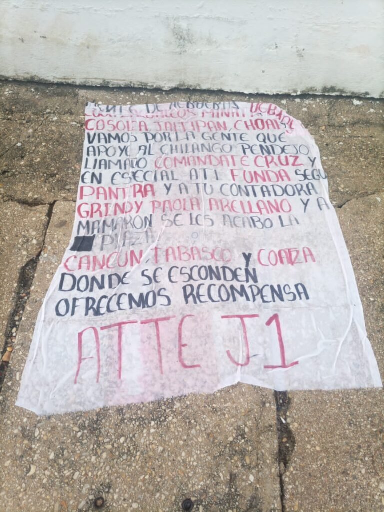 Minutos después, una segunda manta con contenido similar fue encontrada en la colonia Benito Juárez Norte, colocada en la barda del edificio de Telmex, entre las avenidas Constitución y Prolongación de Juárez.