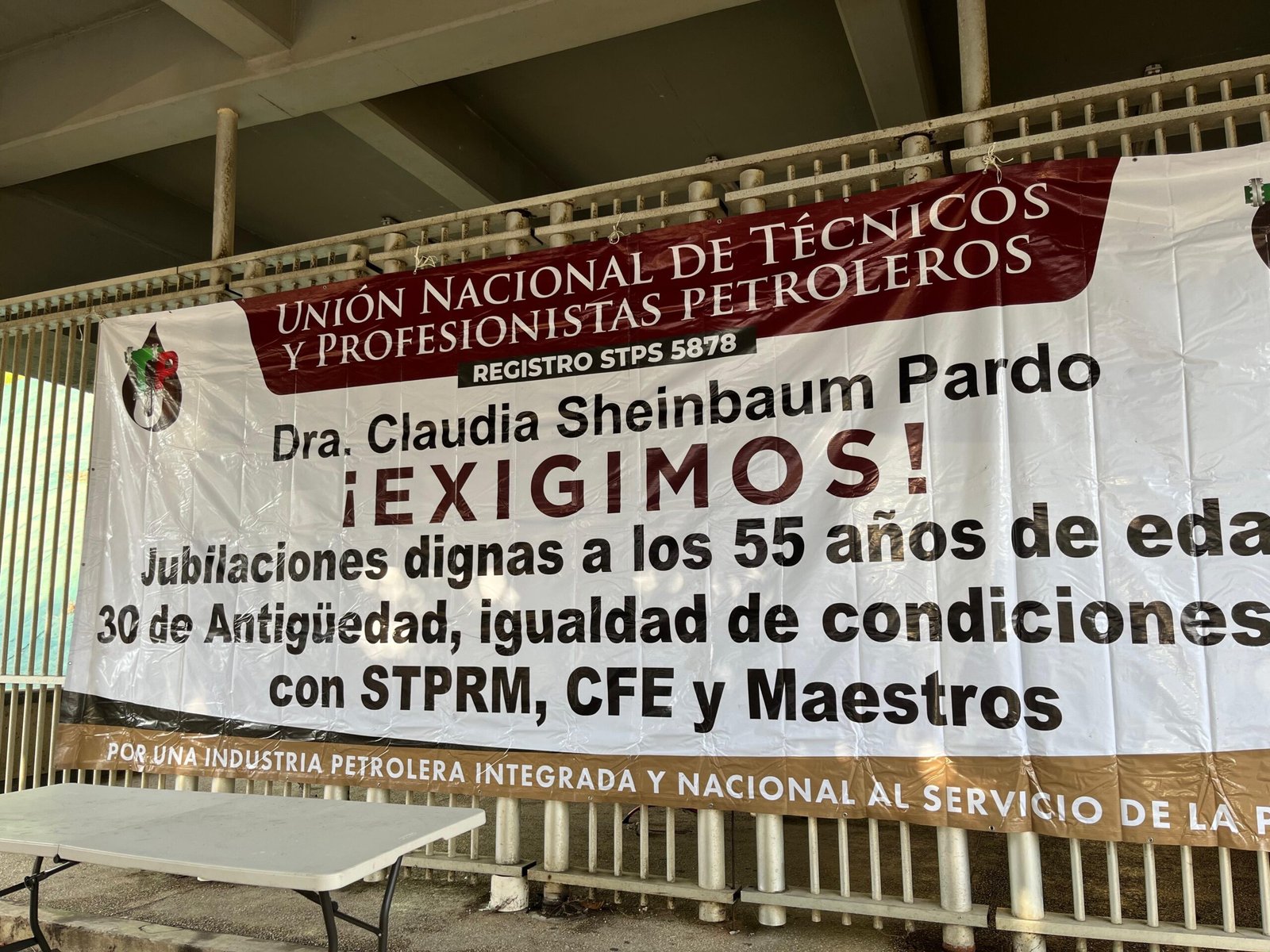 En una manifestación pacífica frente al edificio de Pemex Petroquímica en Coatzacoalcos, dirigentes del gremio señalaron que en complejos como Morelos, Pajaritos y Cangrejera los profesionistas laboran desde hace más de dos meses sin un solo día de descanso.