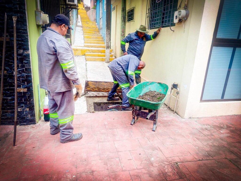 Asimismo, se realizó la limpieza de parrilla en el callejón principal, mejorando el desfogue pluvial en una zona de alta circulación peatonal.