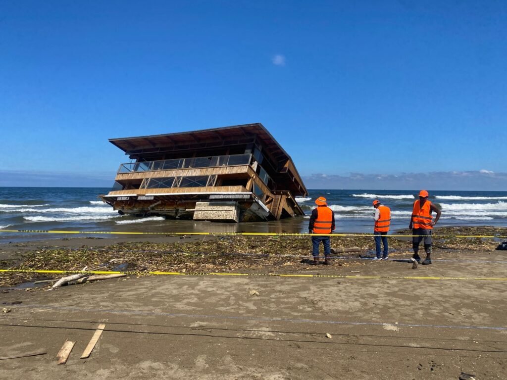 Tras permanecer encallado durante cuatro días en las playas de Coatzacoalcos, el antiguo restaurante flotante El Atracadero será desmantelado para su traslado de regreso al puerto de Tuxpan, su lugar de origen.