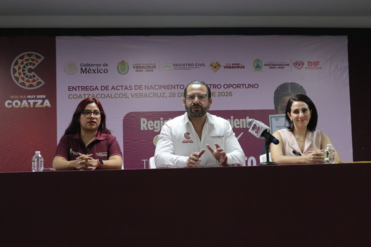 En el evento estuvieron presentes el alcalde Pedro Miguel Rosaldo García; la presidenta del DIF Coatzacoalcos, Sonia Marie Salvador Goraieb; la directora del organismo, Mirna García Ávalos; y el titular del Registro Civil, Fabiani Cueto Salinas.