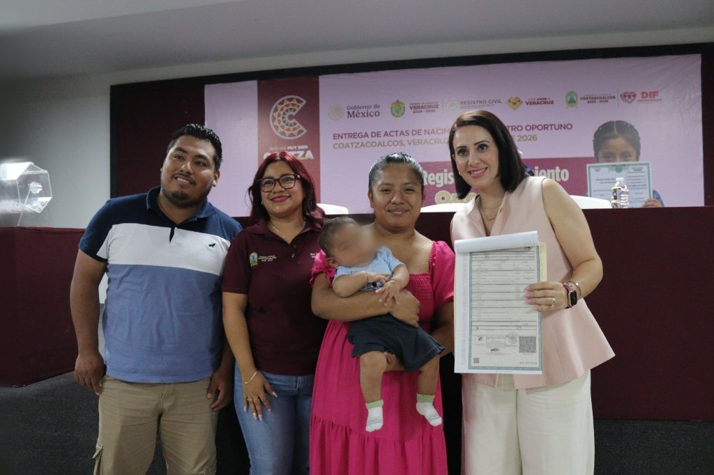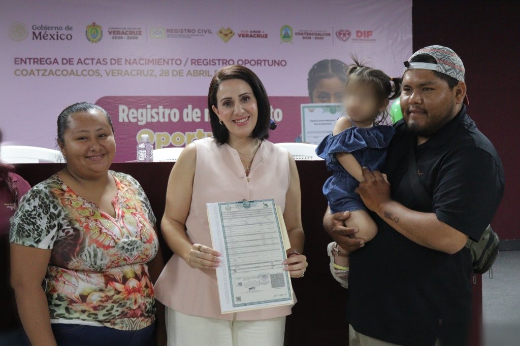 Coatzacoalcos, Ver., 28 de abril de 2026.- El Sistema para el Desarrollo Integral de la Familia (DIF) de Coatzacoalcos concluyó el programa “Registro Oportuno”, mediante el cual 111 niñas y niños recibieron su acta de nacimiento, documento fundamental para garantizar su identidad y el acceso a derechos básicos.