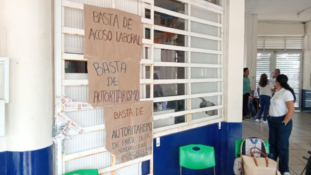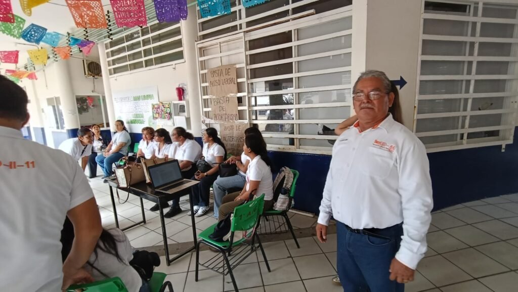 Integrantes del Sindicato Nacional de Trabajadores de la Educación (SNTE), pertenecientes a la delegación 56, tomaron este viernes las instalaciones de la Escuela Secundaria y de Bachilleres “Miguel Alemán González” (MAG) en sus turnos matutino y vespertino, en protesta por presuntos actos de acoso laboral y la restricción en el uso de espacios escolares.