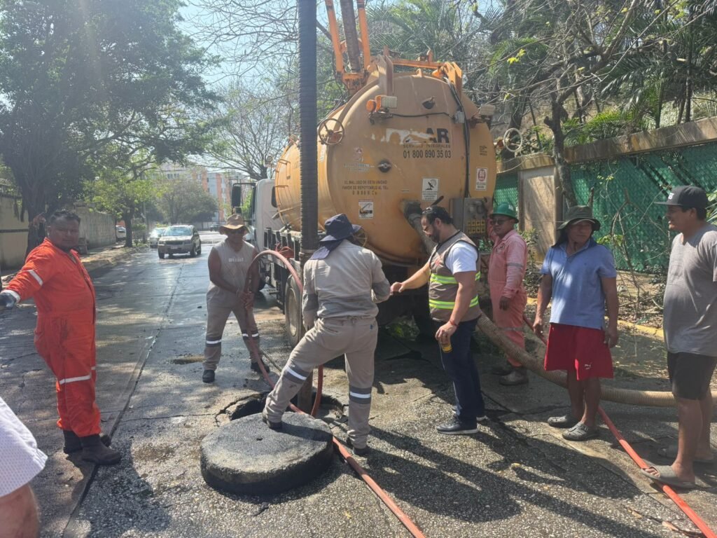 Desde temprana hora, el munícipe acudió a la avenida Jacarandas, en la colonia Fovissste 3, donde se ejecutaron trabajos de sondeo con equipo vactor para atender un problema de drenaje sanitario que ha generado afectaciones a familias del sector.