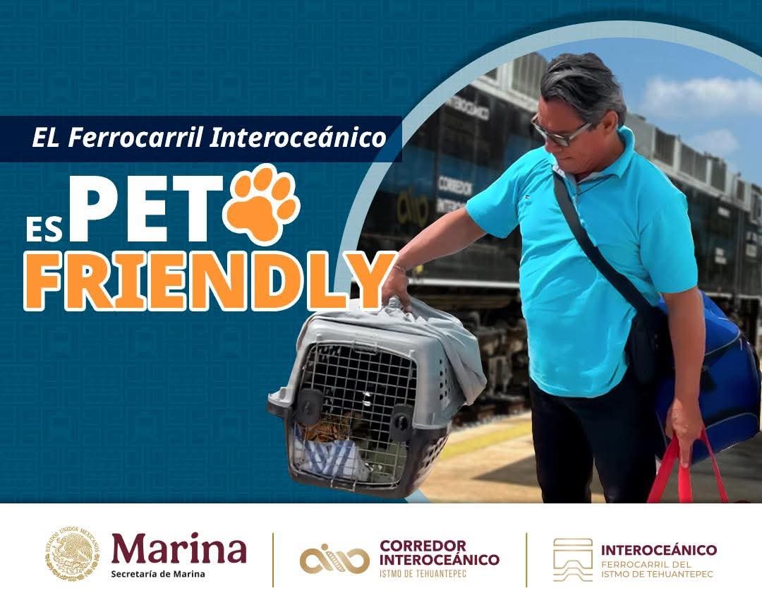 El Ferrocarril Interoceánico del Istmo de Tehuantepec (FIIT) anunció a través de sus redes sociales que los pasajeros ya pueden viajar acompañados de sus mascotas, convirtiendo cada recorrido en una experiencia más amigable y familiar.