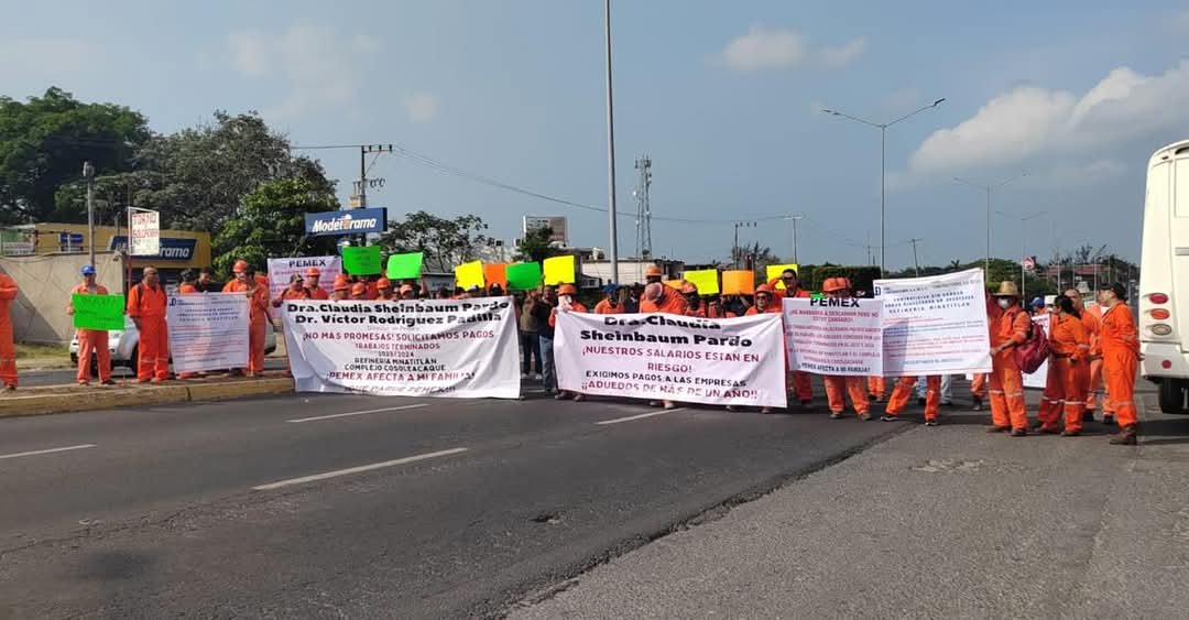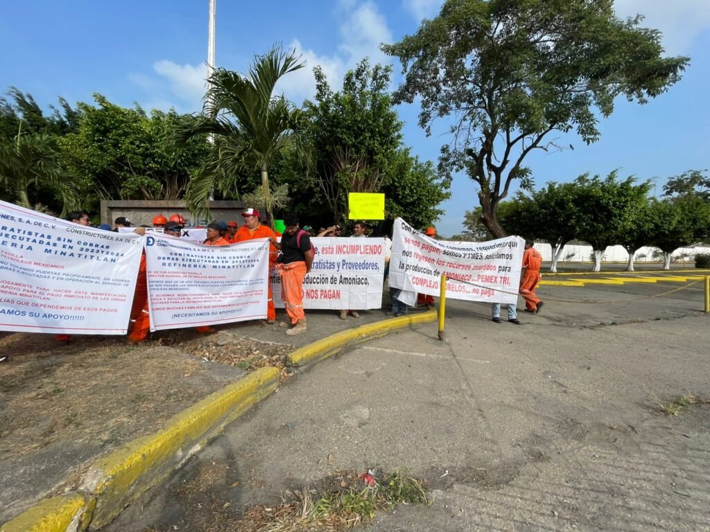 Este martes, representantes de diversas compañías contratistas se congregaron a las afueras del Complejo Petroquímico Cosoleacaque para manifestarse pacíficamente y exigir a Petróleos Mexicanos (Pemex) el pago de servicios realizados entre 2023 y 2024. Los adeudos, según denunciaron, ascienden a más de mil 800 millones de pesos.