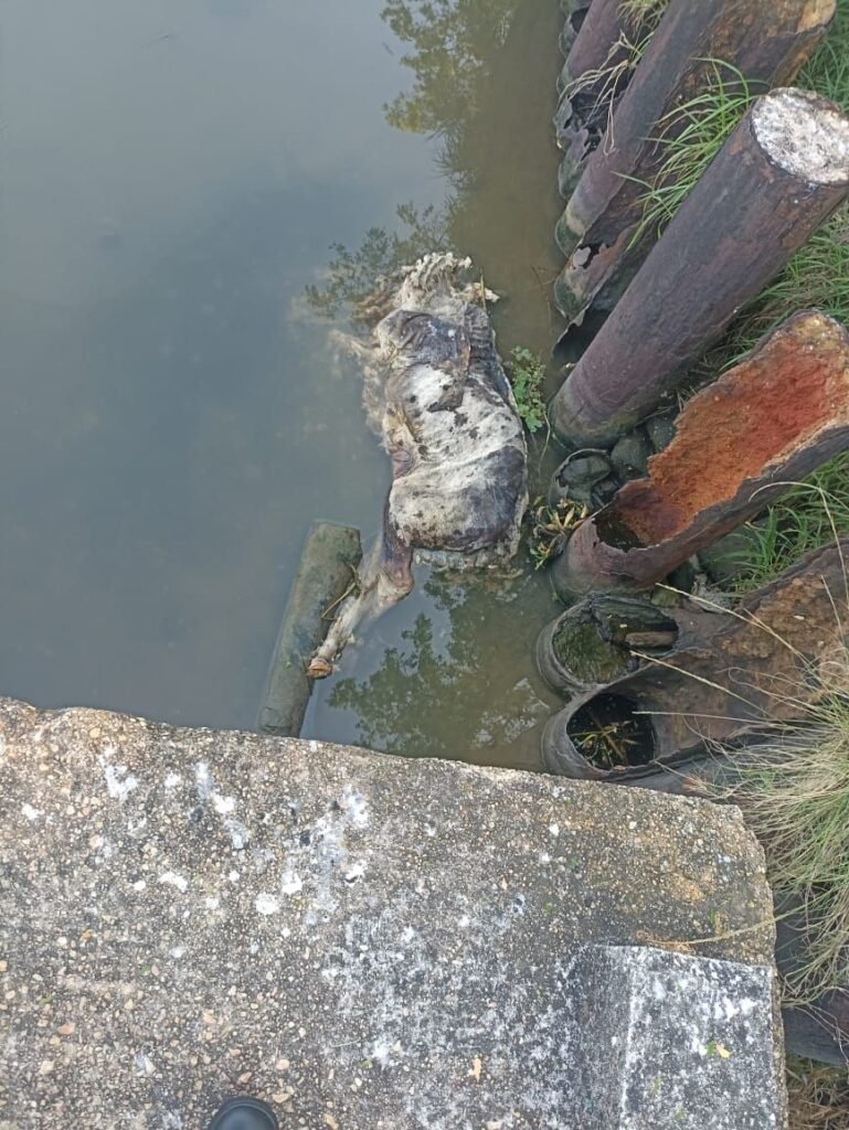 Se trataba de una vaca en avanzado estado de descomposición, la cual se encontraba atorada entre las estructuras del muelle.