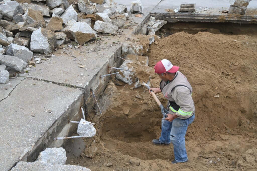 Personal de la Dirección de Obras Públicas, a través del área de Infraestructura Urbana, realiza trabajos integrales de rehabilitación de calles, atendiendo de manera prioritaria el sistema de drenaje sanitario, el cual con el paso de los años presenta colapsos que generan socavones y ponen en riesgo a la población.