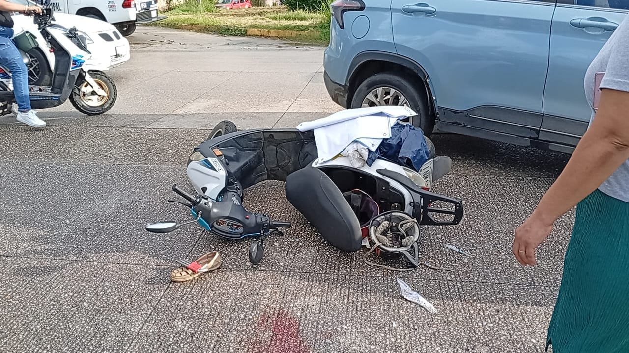 Una mujer resultó gravemente lesionada la mañana de este jueves tras un fuerte accidente ocurrido en el acceso a la colonia Villas de San Martín, al poniente de Coatzacoalcos, cuando la motoneta en la que viajaba junto a su esposo fue impactada por un auto