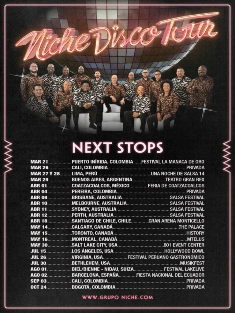 Fundado en Colombia, Grupo Niche es considerado uno de los máximos referentes de la salsa en América Latina, con una trayectoria que incluye éxitos que han trascendido generaciones y escenarios internacionales.