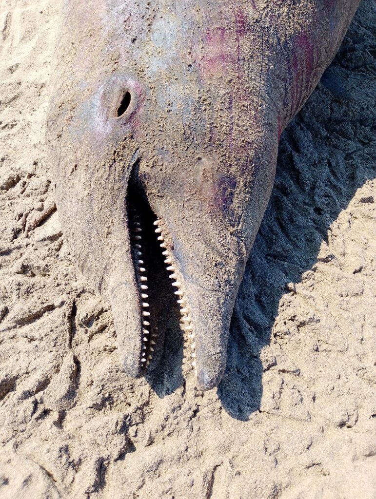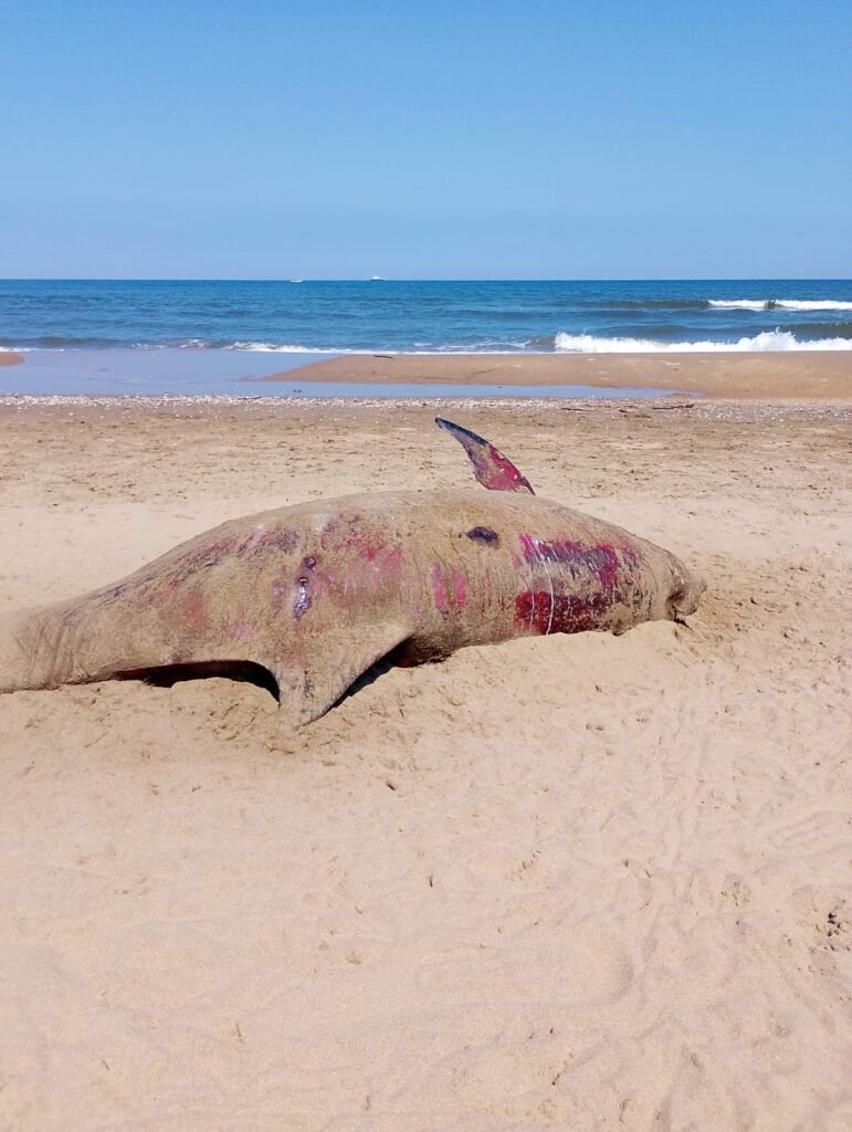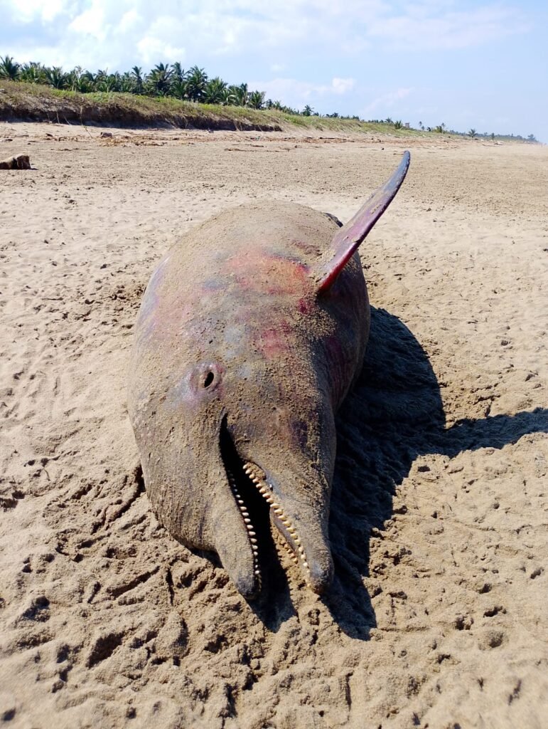 Un delfín fue encontrado sin vida en la playa del ejido Guillermo Prieto, en el municipio de Coatzacoalcos.