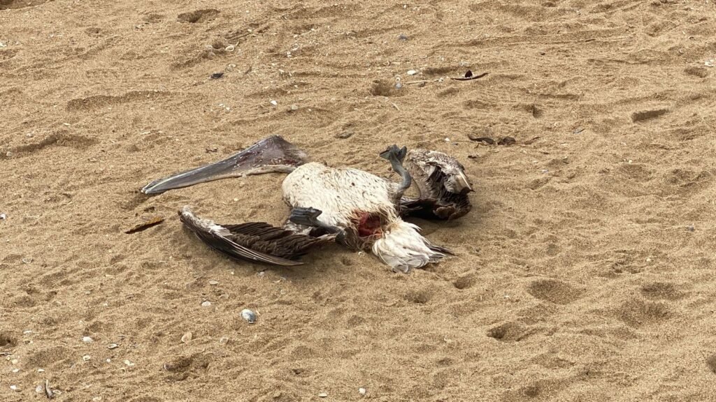 El primer reporte se registró en la zona de playa, a la altura de la calle Carolino Anaya, en la colonia Escolleras, donde fue encontrado un pelícano sin vida.