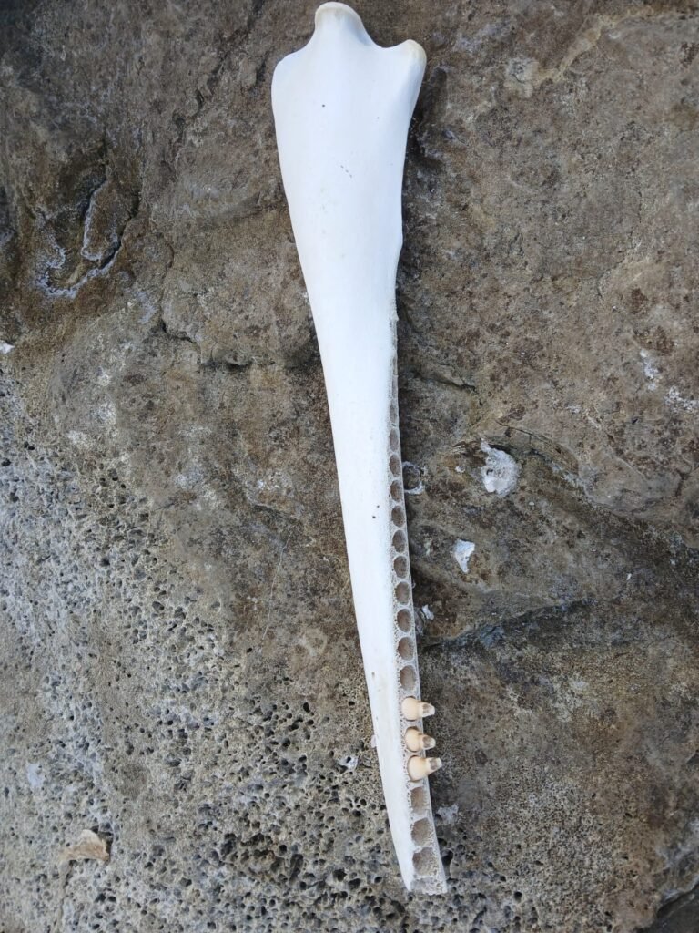 Los huesos corresponden aparentemente a un delfín, aunque aún no se ha confirmado oficialmente la especie del animal.