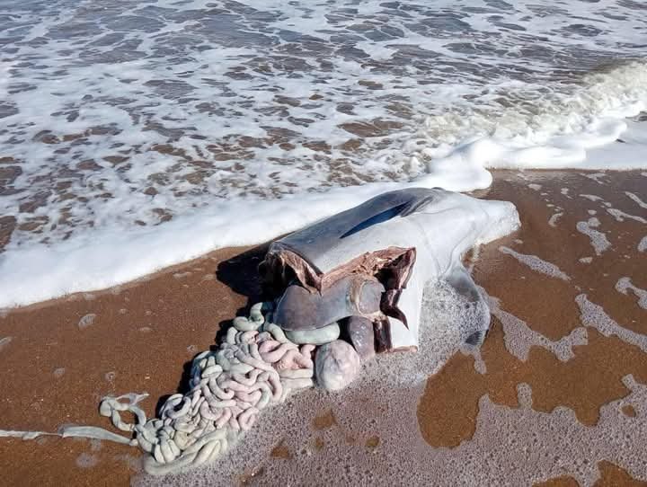 El hallazgo fue reportado por residentes que observaron el cuerpo del cetáceo con cortes evidentes y exposición de vísceras.