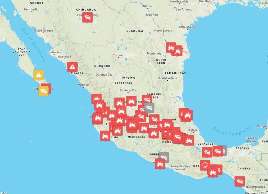 • Jalisco: La Zona Metropolitana de Guadalajara y carreteras aledañas registran quema de vehículos de carga y bloqueos totales.