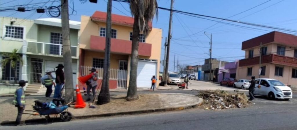 Las jornadas inician con labores de barrido y chapeo, donde cuadrillas municipales realizan la limpieza de calles, banquetas y áreas verdes.