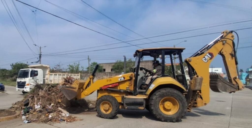 Posteriormente, maquinaria pesada interviene para retirar montículos de arena, residuos vegetales y neumáticos abandonados, evitando que estos permanezcan en la vía pública.