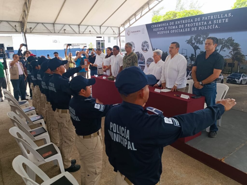 Finalmente, felicitó a los nuevos oficiales y reiteró su reconocimiento a los elementos municipales: “Estoy seguro que están capacitados y que seguirán haciendo las cosas bien en beneficio de los habitantes de Coatzacoalcos”.