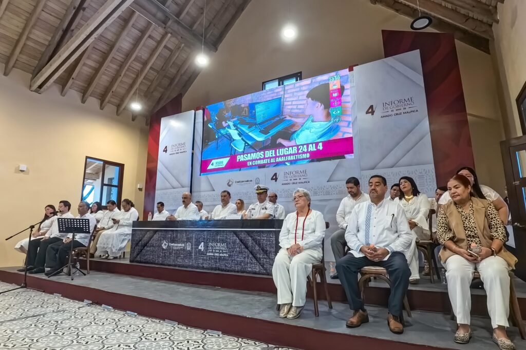 En un evento realizado en “Chantli”, la Casa del Pueblo, y ante la presencia de autoridades civiles, militares y representantes de diversos sectores —empresarial, educativo, político, deportivo y social, Cruz Malpica destacó que estos casi tres años de gestión estuvieron marcados por retos significativos, pero también por avances que, aseguró, contribuyeron al fortalecimiento del municipio.