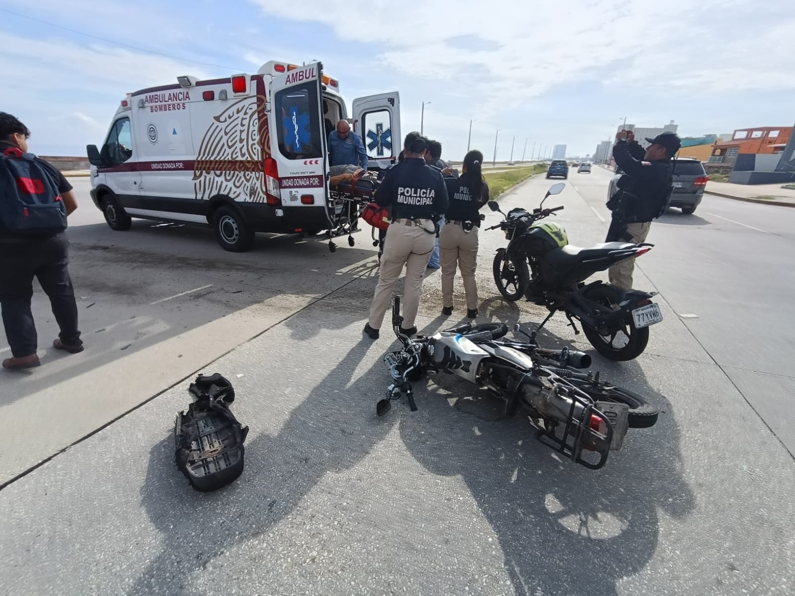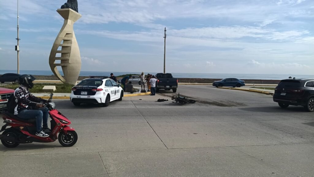Un joven motociclista identificado como Freddy resultó lesionado luego de impactarse contra una camioneta, sobre el malecón costero, a la altura de la colonia Pensiones.