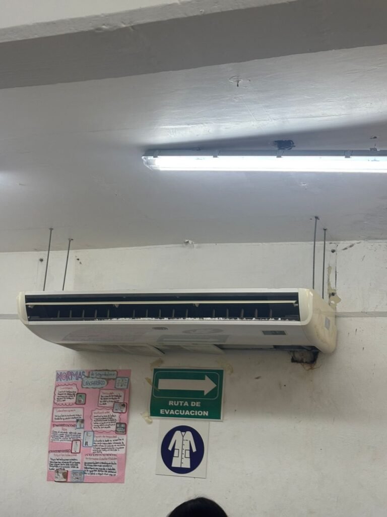 En el CBTIS 85, alumnos del grupo 2° “M” denunciaron que llevan más de un año reportando fallas en los sistemas de climatización del laboratorio.