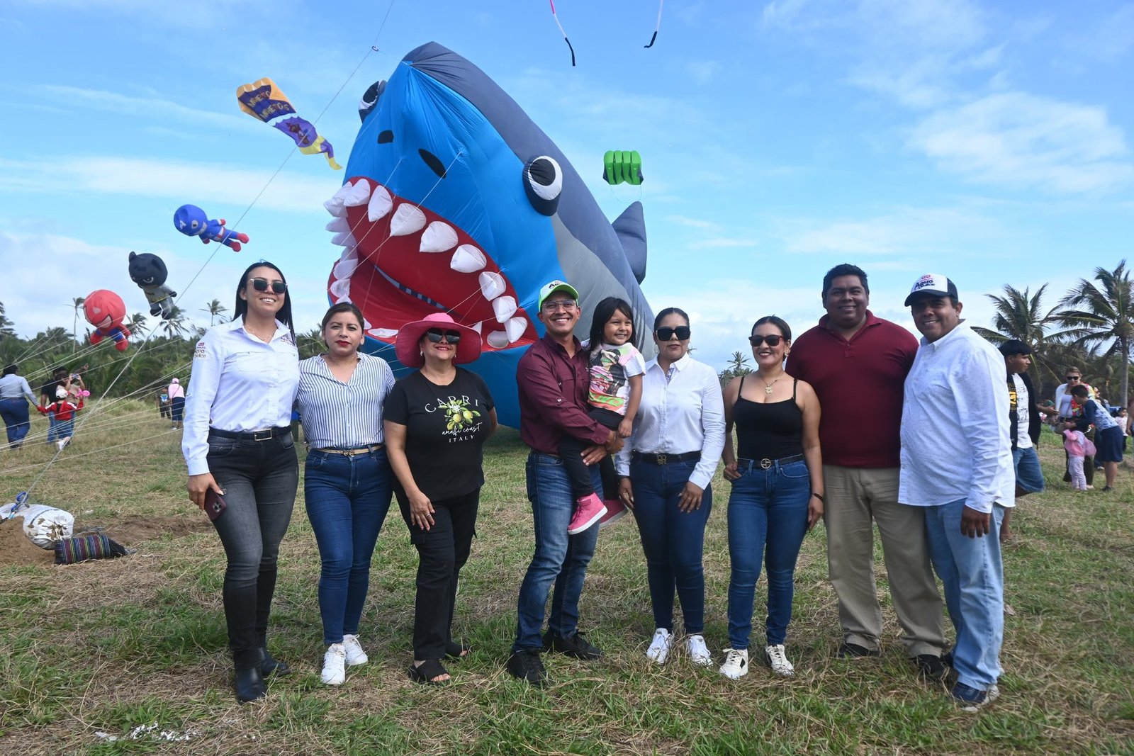 Durante la jornada, más de 30 papalotes gigantes fueron elevados sobre la playa, generando un espectáculo visual que captó la atención de los asistentes.