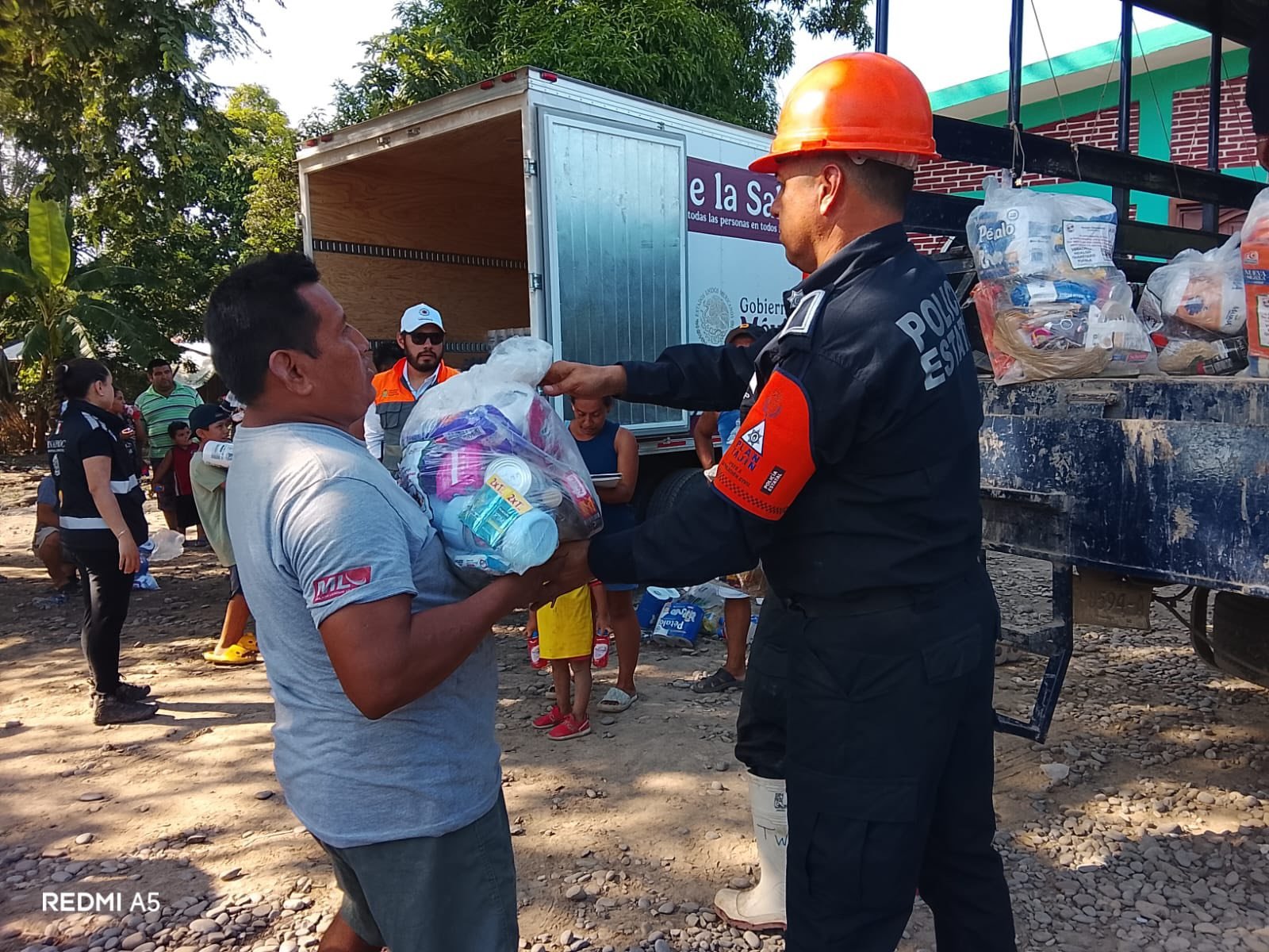 Mediante el Plan Tajín de la Secretaría de Seguridad Pública (SSP), en las últimas 24 horas se han distribuido 2 mil 305 raciones de comida caliente, 457 paquetes alimentarios a familias damnificadas por la vaguada y la depresión tropical 90E en la zona norte del estado.