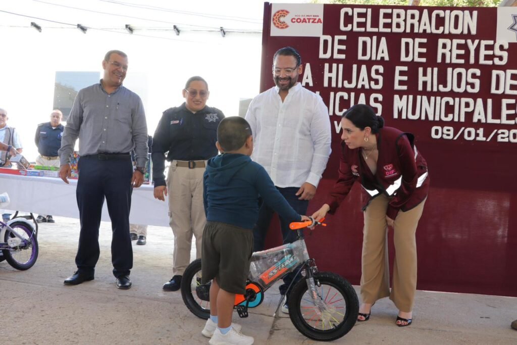 Con su carita sonriente, la hija de la oficial Mara Caballero Ordaz recibió una muñeca de regalo, pero sus ojos se iluminaron cuando vió que además, como a todos los hijos de los policías municipales, la presidenta del DIF Sonia Marie Salvador Goraieb le hizo entrega de una bicicleta, reconociendo el compromiso de sus padres para proteger a los habitantes de Coatzacoalcos.