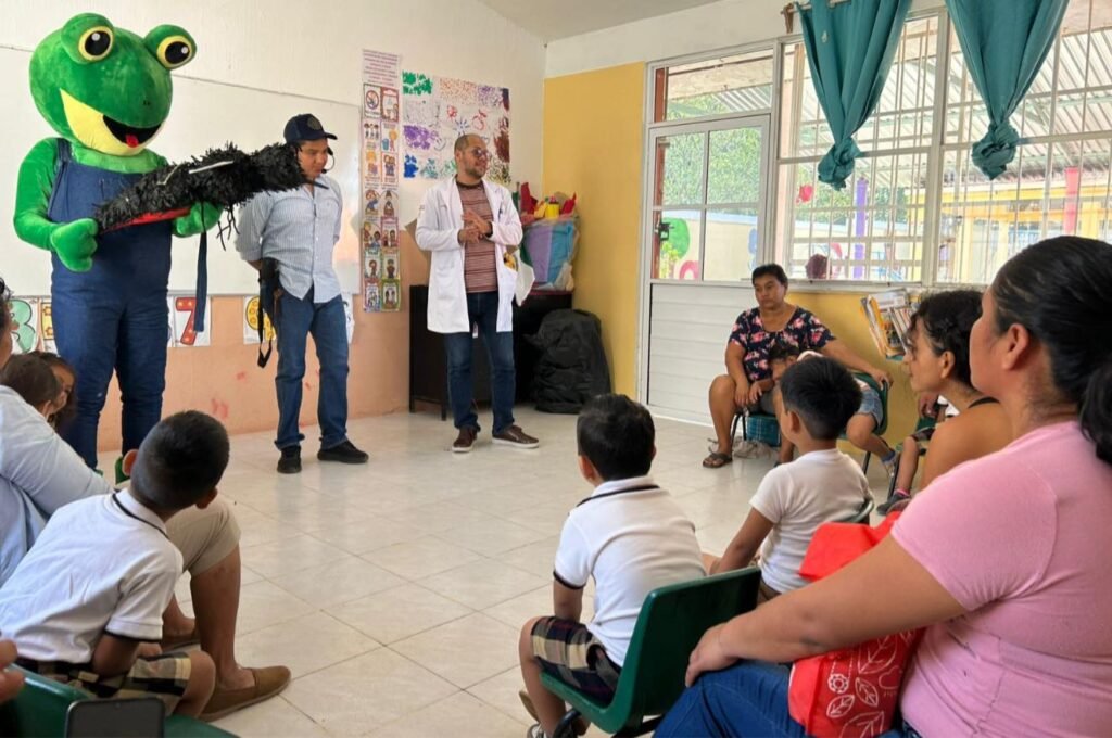 autoridades municipales promovieron entre la comunidad escolar medidas sencillas pero fundamentales para evitar la reproducción del mosquito transmisor.