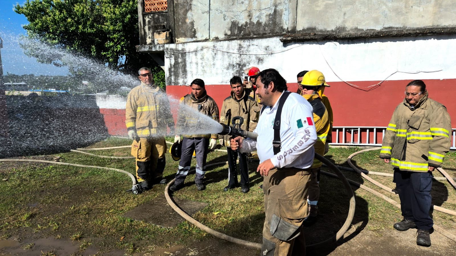 Durante la capacitación también se realizó la prueba de una manguera de 2.5 pulgadas y 30 metros de longitud, donada por el CLAM de Coatzacoalcos, la cual demostró un desempeño óptimo para la atención de emergencias, fortaleciendo el equipamiento con el que cuenta el municipio.