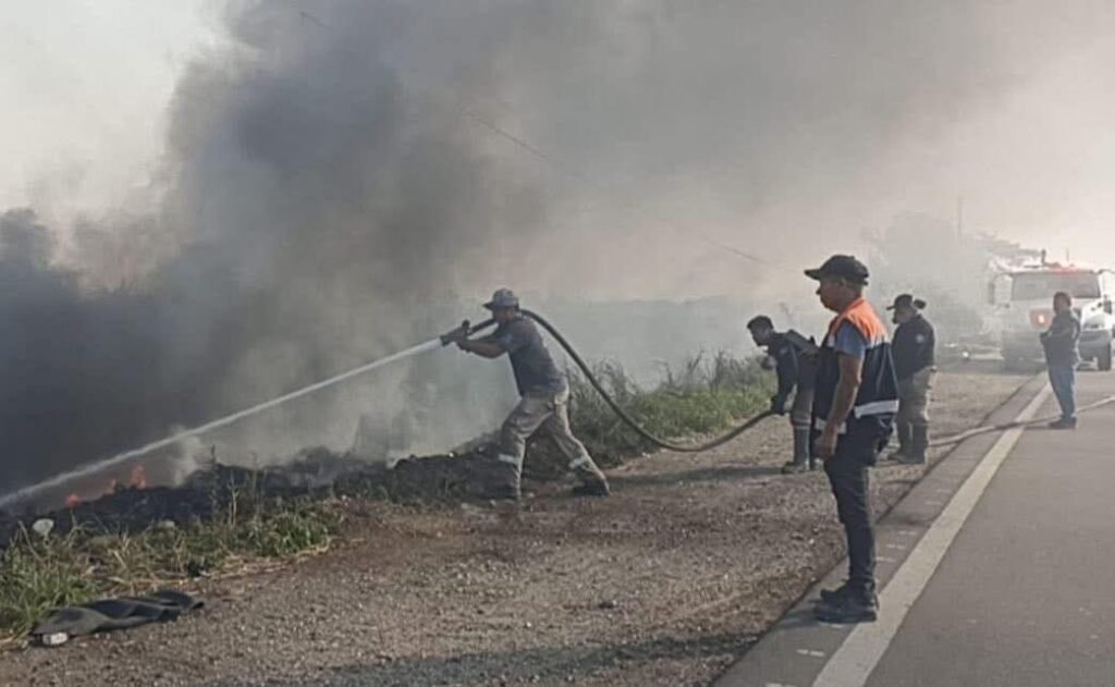 Un incendio de gran intensidad se desató la mañana del lunes 19 de mayo en la zona de Las Matas, provocando el cierre total de la carretera que conecta Coatzacoalcos y Minatitlán.